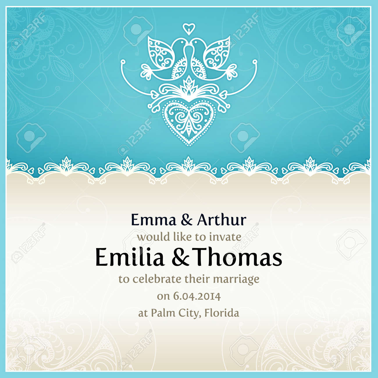 Invitation De Mariage Royal Bordure En Dentelle Vintage Bleu Elegant Clip Art Libres De Droits Vecteurs Et Illustration Image 37599733