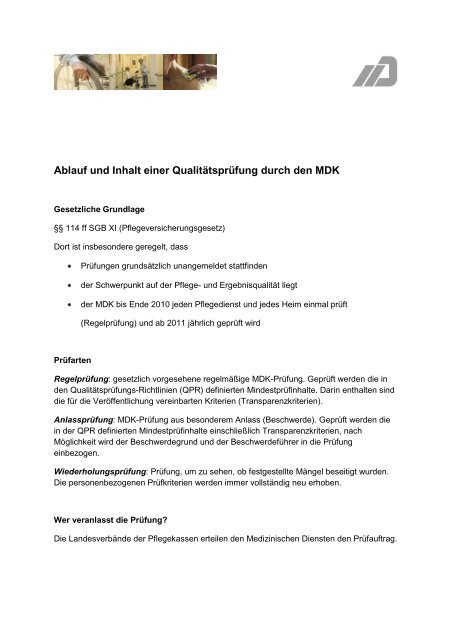 Ablauf Und Inhalt Einer Qualitatsprufung Durch Den Mdk Pdf Free Download