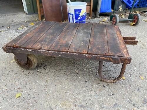 Vintage Antique Metal Frame Wooden Top Trolley Coffee Table Industrial Project